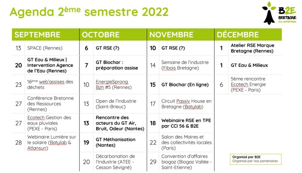 Depuis le 1er janvier 2022, B2E a organisé 14 évènements :